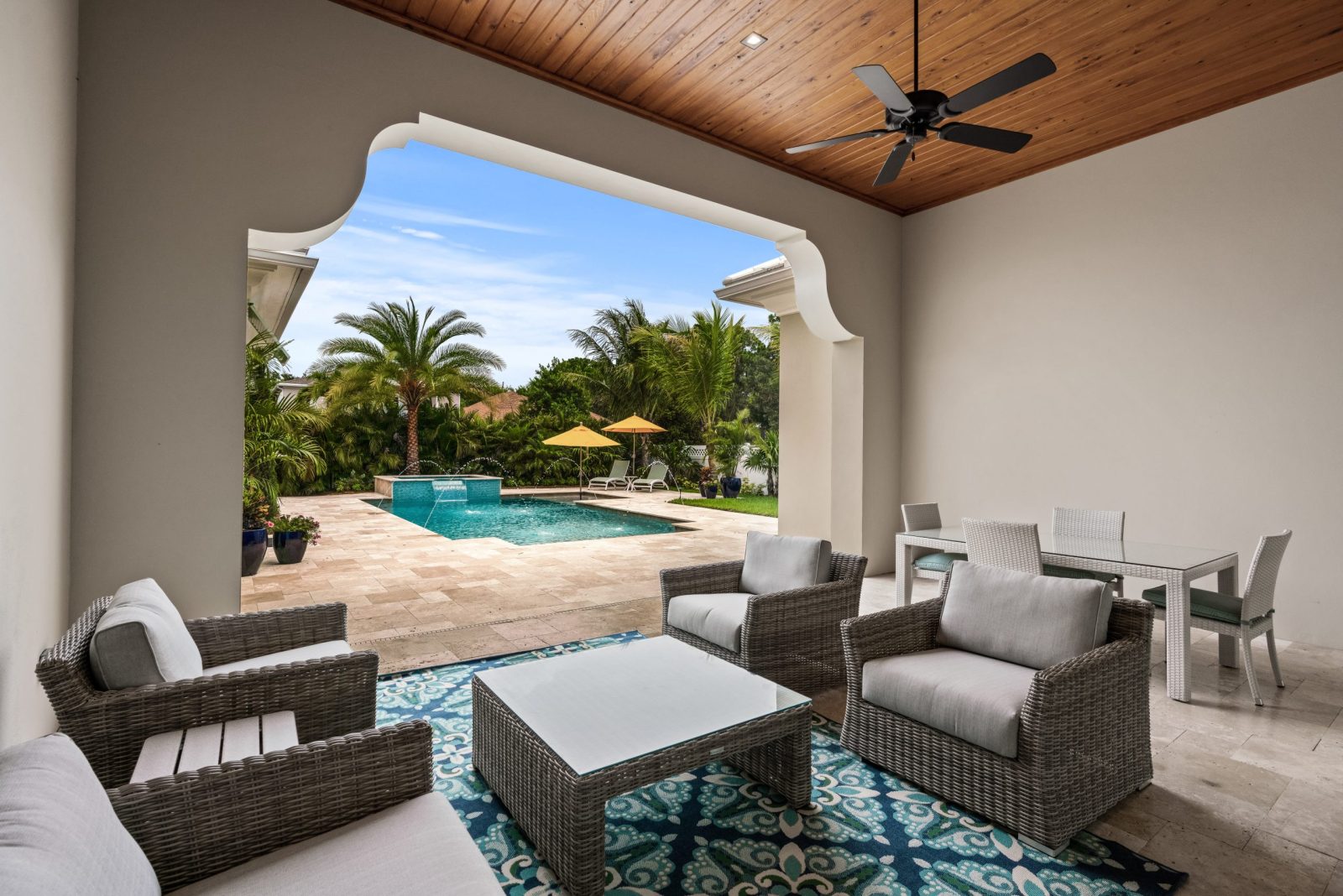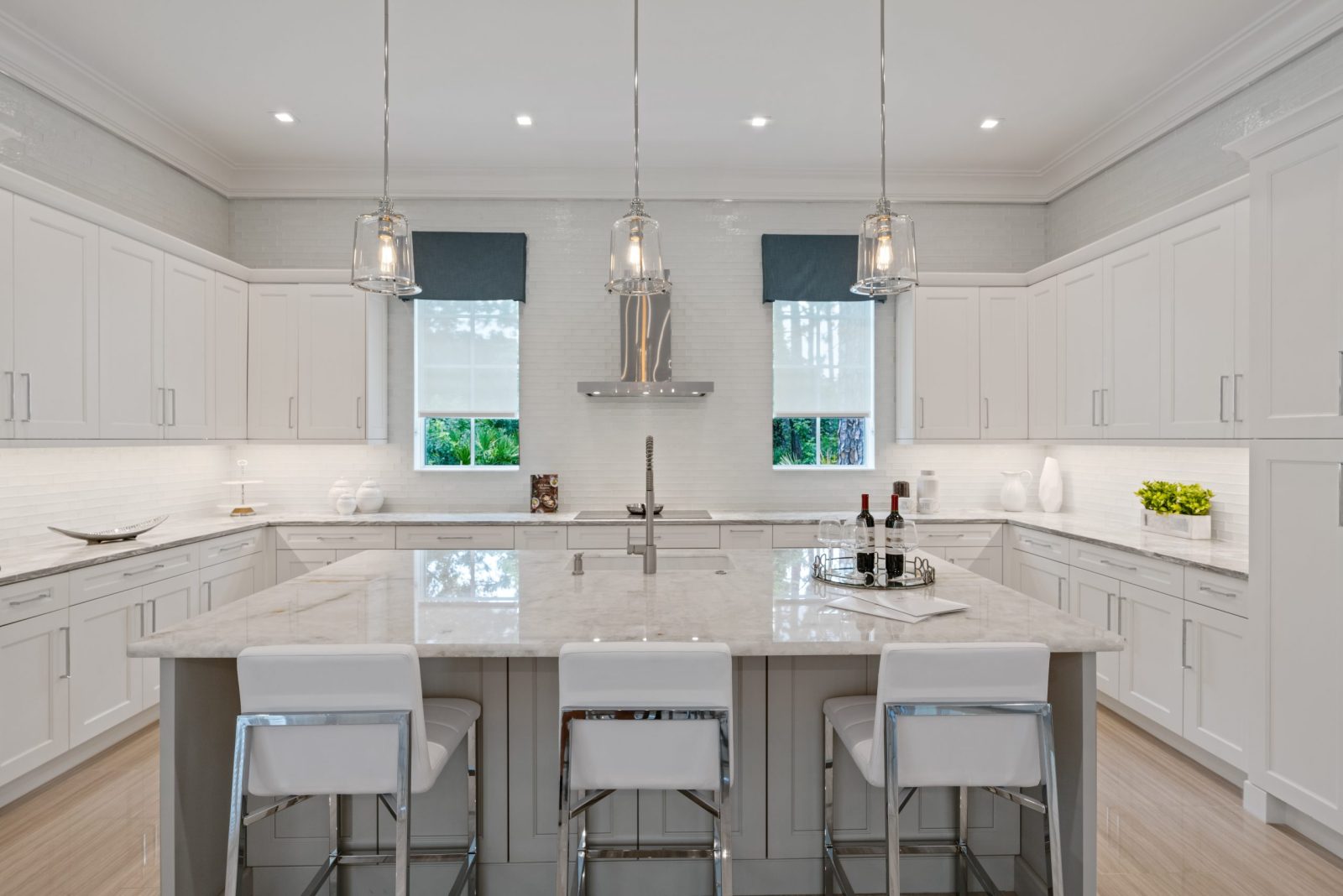This luxury custom home was built as a spec on one of the last remaining lots in Abacoa, a 2,055-acre mixed-use community of over 6,000 homes, offices and retail that was developed by numerous homebuilders and commercial developers in Jupiter, Florida. Atlantic Crest Home built a series of extraordinary custom estate homes on Greenway Drive. These large three- to five-bedroom floorplans were available with a wide selection of interior features including fine cabinetry, granite countertops, top-shelf stainless steel appliances and designer millwork. Architecture was designed in elegant Bermuda, Spanish and British West Indies styles.
